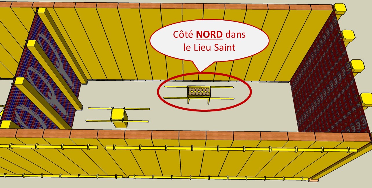 La table des pains de proposition se trouve dans le Lieu Saint du côté droit en entrant, côté nord. |